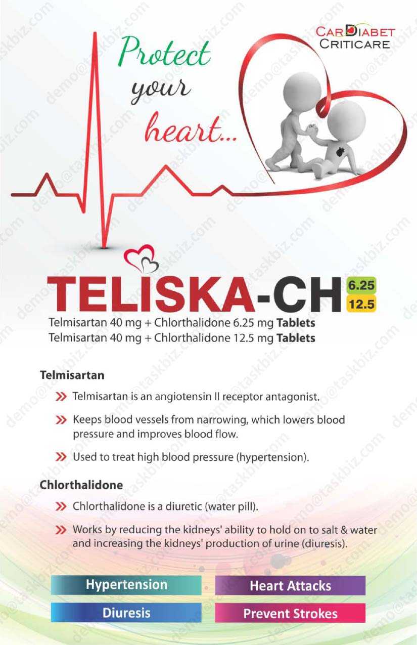 CARDIAC RANGE 1 TELISKA-CH 6.25 TELISKA-CH 6.25 Telmisartan 40 + Chlorthaalidone 6.25 ALU-ALU Website Link Product Image Visual Image