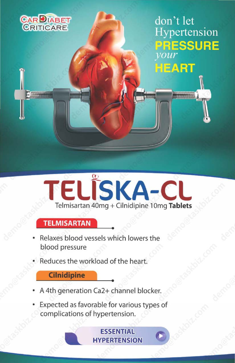 CARDIAC RANGE 2 TELISKA-CL TELISKA-CL Telmisartan 40mg+Clindinpine 10mg ALU-ALU Website Link Product Image Visual Image