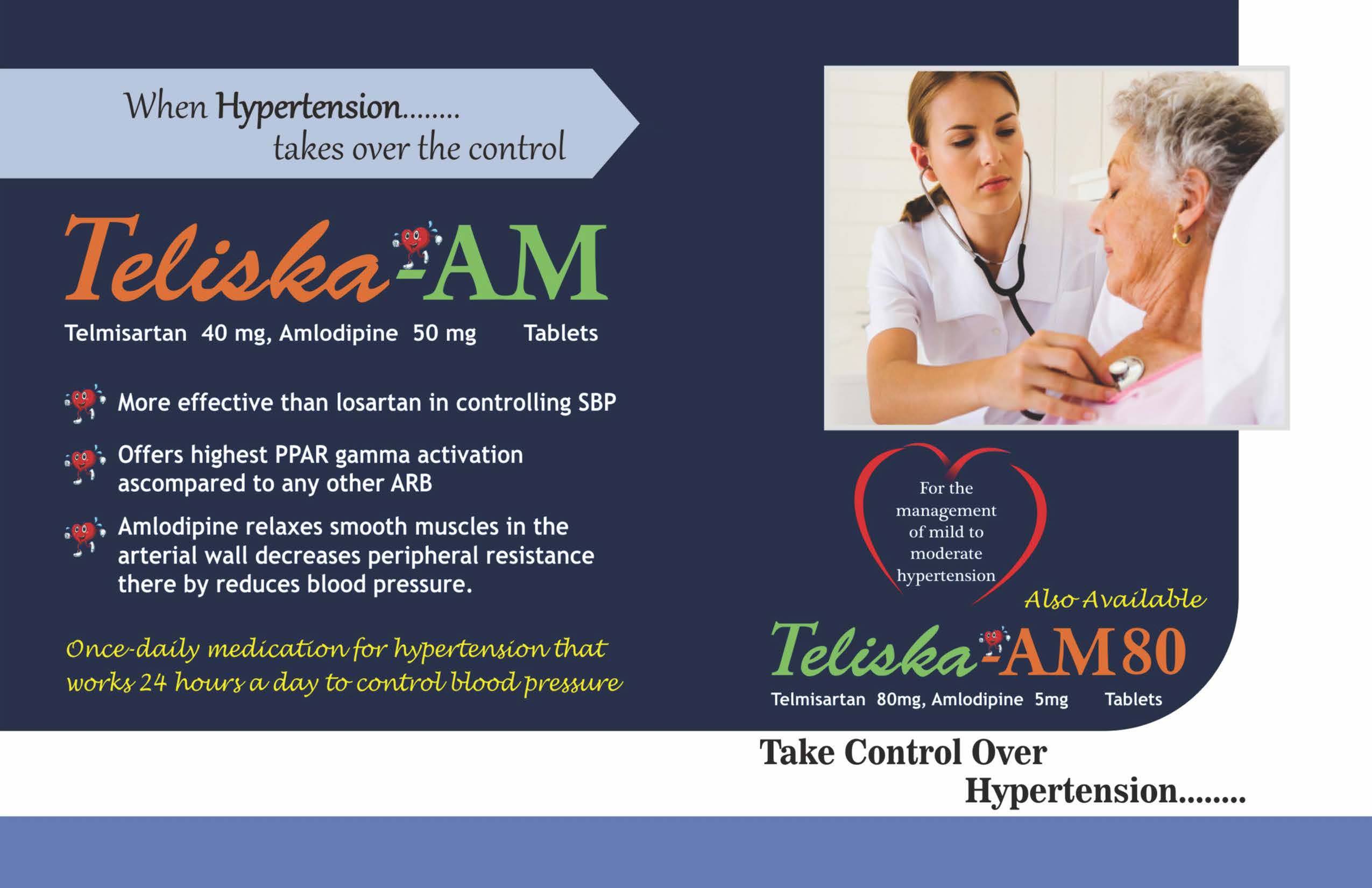 CARDIAC RANGE 4 TELISKA-AM Telmisartan 40mg + Amlodipine 5mg1. More effective than Losartan in controllin SBP.2. Offers highest PPAR Gamma activation as compared to any other ARB. ALU-ALU Website Link Product Image Visual Image