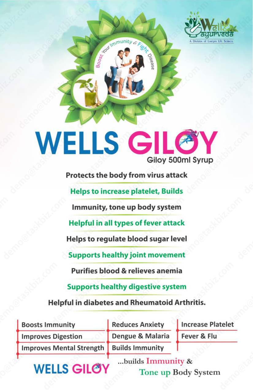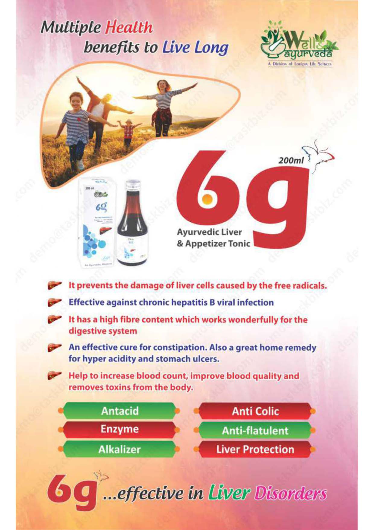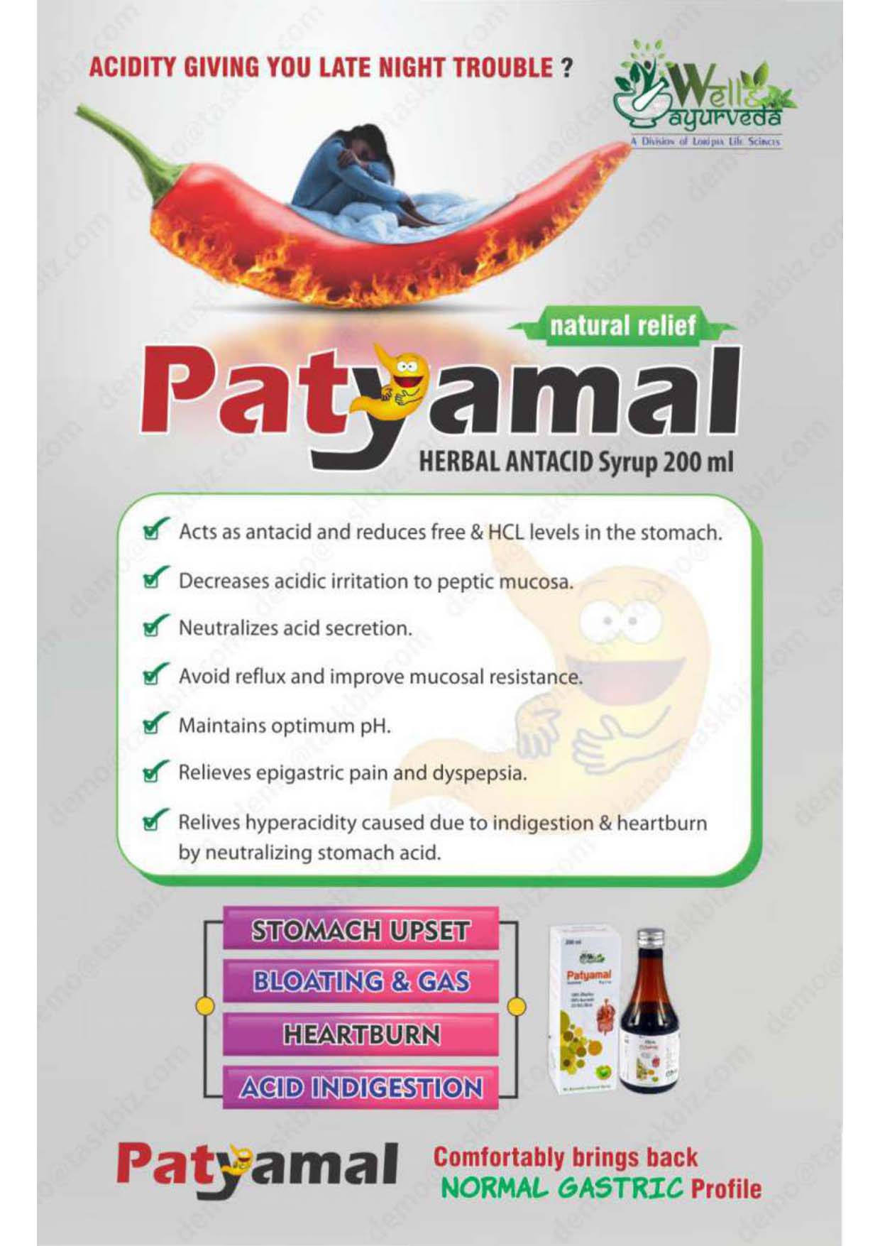 Each 5ml. Contain-Extract papaya leaf (Carica papaya) 1200mg+Extract Madhukparni leaf (Centella asiatica 400mg+Ext.Aloe vera leaf 200mg+Ext.Amla (fr) 200mg+Ext.Haritiki(Fr) 100mg+Ext.Giloy(ST)100mg+Ext.Danameth(SD) 100mg+Ext.Punarvana (RT)100mg+Ext.Tulsi